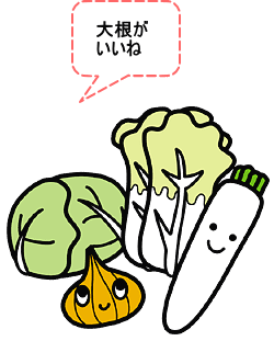 アブラナ、小松菜、シソ、玉ねぎ、にら、人参、ネギ、パセリ、ピーマン、三つ葉、ラッキョウ、ショウガ、ニンニク、銀杏、里いも、春菊、ソラマメ、白菜、山芋、鶏肉、豚肉、豆乳、大根、カイワレ、きゅうり、ごぼう、レンコン、ワラビなど。