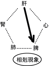 五行論において、肝は脾(消化器)を剋します。肝→脾の