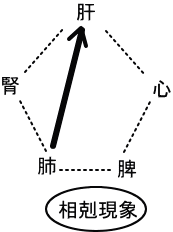 辛い味は肺を亢進させますが(11五味)、肺が亢進すると肝を攻撃します。これを