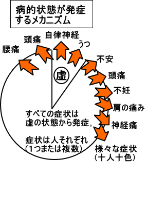 3 急激な生命力不足の状態 または 生命力不足の状態が長く続くなどの要因があれば、病的状態となって発症します。