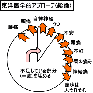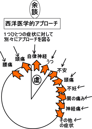 西洋医学的アプローチは、それらの個々の症状に対して、別々にアプローチしていると思われます。